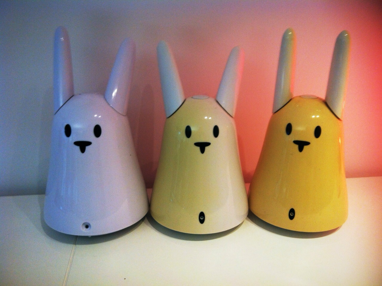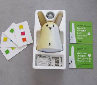 Truc à savoir quand on a un Nabaztag/tag : ça jaunit. Je n’ai jamais vu de Nabazatg atteint de ce problème (le premier modèle, mat), mais le second — doté d’un nombril — jaunit assez rapidement s’il est exposé aux ultraviolets, à une fenêtre par exemple. Ce modèle en vente sur LeBonCoin est un bon exemple : le lapin n’a sûrement jamais bougé de sa fenêtre…