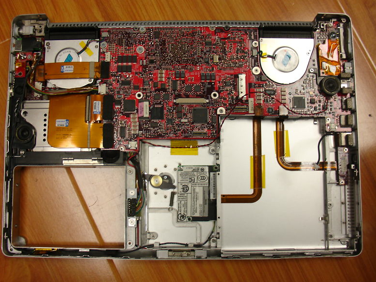 Un prototype de PowerBook G4 (un modèle aluminium) sur eBay, en vente en pièces détachées. Ici la carte mère est rouge bien évidemment.