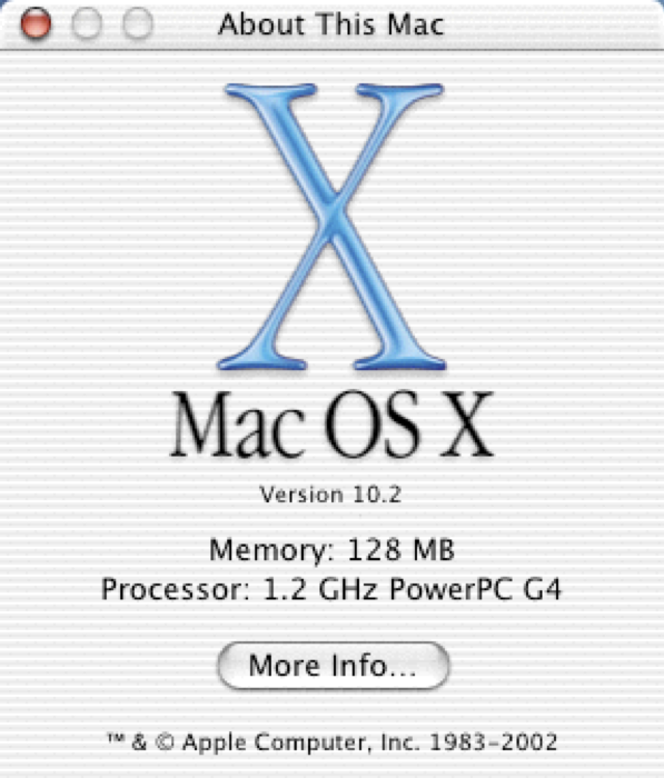 Pour les amateurs, j’ai testé le tout sur un portable sous Windows 7 32 bits à base de Core 2 Duo (2 GHz). La machine avait 3 Go de RAM et un disque dur classique. J’ai testé Mac OS X 10.2 Jaguar, qui est évidemment assez lent, mais pas tellement plus que sur un Mac de la fin des années nonante.