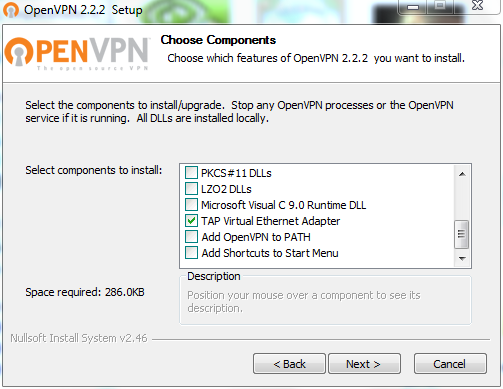 La seule chose nécessaire est la TAP Virtual Ethernet Adapter.