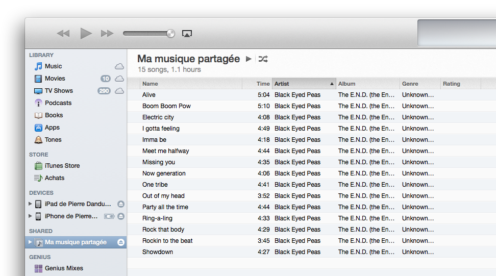 Normalement, les titres ajoutés dans le partage seront ajoutés dans la bibliothèque partagée toutes les heures. Selon les version d’iTunes, ça peut planter le flux à ce moment-là.