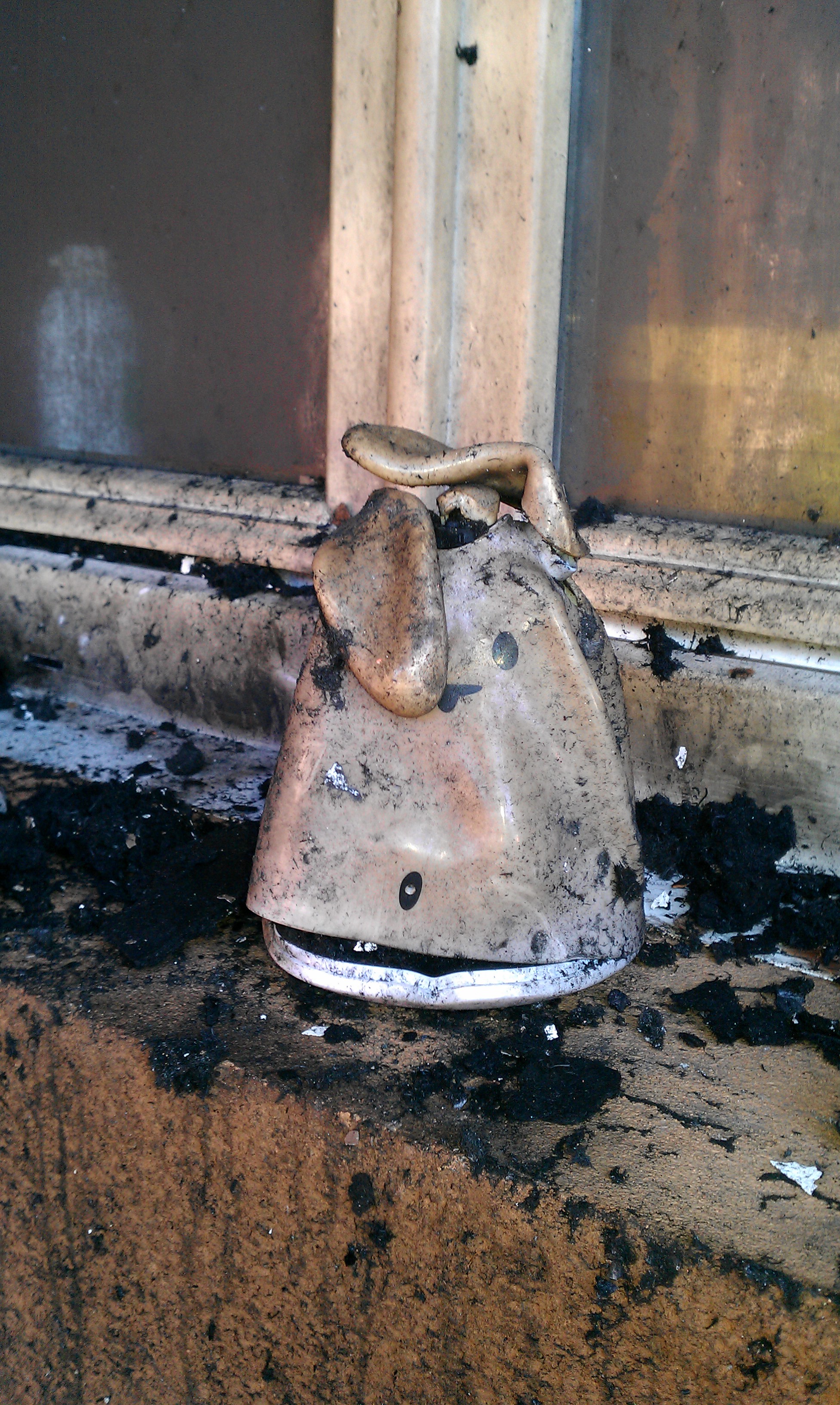 Le Nabaztag de @carsso n’a visiblement pas aimé de se retrouver dans un incendie.