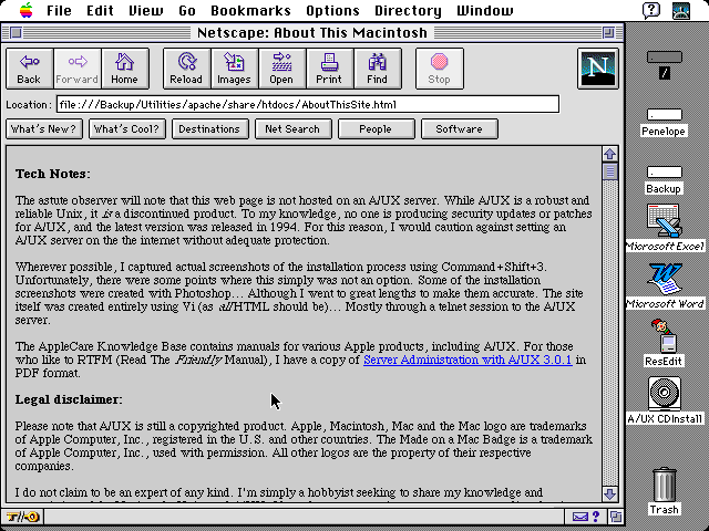 Pour les amateurs qui disposent de vieilles machines chez eux, le site A/UX Penelope propose pas mal d’informations sur le système d’exploitation.