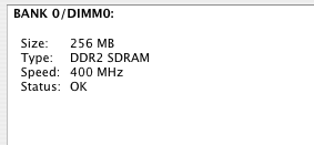 Mac OS X est globalement fonctionnel, avec quelques limites. Limites matérielles d’abord : le processeur est à seulement 1 GHz, il n’y a que 256 Mo de RAM. L’audio ne fonctionne pas par défaut (il est a priori possible de modifier le pilote), la carte graphique ne gère pas Quartz Extrême, ce qui ralentit certains traitements et empêche certains programmes de se lancer. Le seul port USB est une limite : un hub USB alimenté est fortement recommandé.