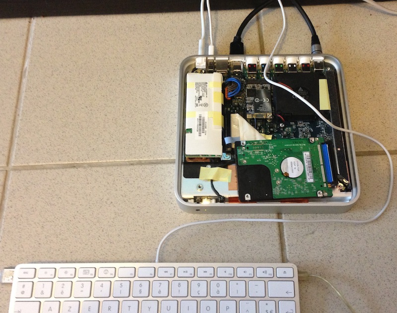 Pour la suite, il suffit de replacer le disque dur dans l’Apple TV, de brancher l’appareil et d’espérer que ça démarre.