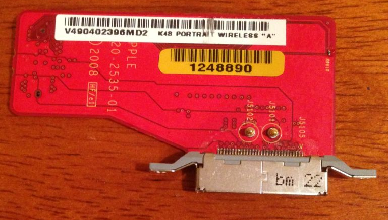 Encore sur eBay, un composant étonnant : destiné à l’iPad de première génération (K48), c’est le connecteur dock en mode portrait. En effet, pas mal de prototypes d’iPad avaient deux connecteurs dock, un en mode portrait et un en mode paysage. Apple a abandonné l’idée lors du développement, mais on trouve encore parfois des traces de ce second connecteur…