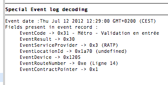Un onglet Calypso Explorer s’ouvre, et il suffit d’explorer les valeurs. On trouve un peu de tout, dont notamment les heures des dernières validations (et souvent la ligne associée, ainsi que la gare).