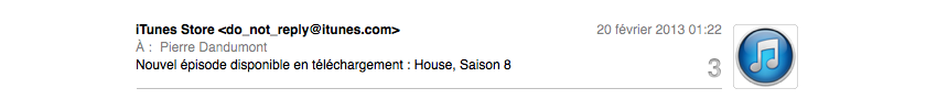 Si vous aussi vous voulez une jolie icône à côté des mails d’iTunes (ou de n’importe quelle adresse), il y a une petite astuce qui fonctionne bien sous OS X Mountain Lion.