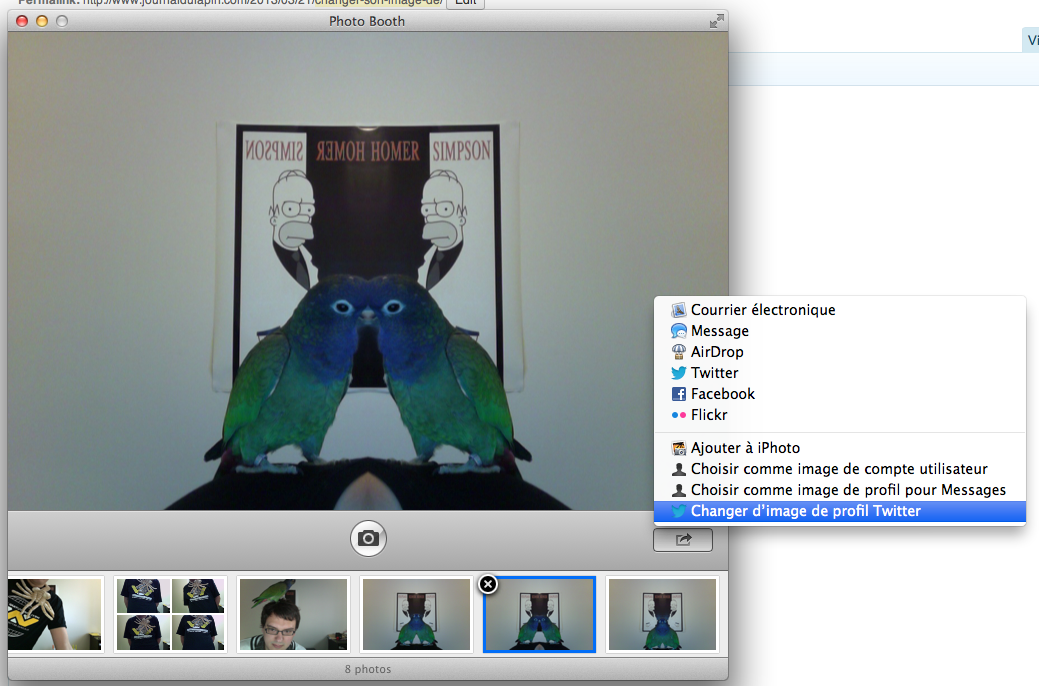 Photo Booth, ça ne sert pas juste à s’amuser dans un Apple Store. Depuis OS X 10.8.3, le logiciel permet en effet de changer d’image de profil sur Twitter en un seul clic. Amusant et pratique.