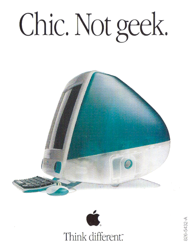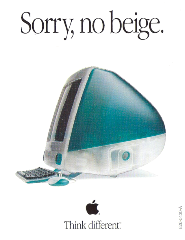 Apple, à une époque, faisait plus que fournir des stickers en forme de à mettre sur la voiture, parfois on avait aussi des images avec de petits slogans… Avant Hello Kitty pour Jaguar, voici Sorry, no beige pour l’iMac.