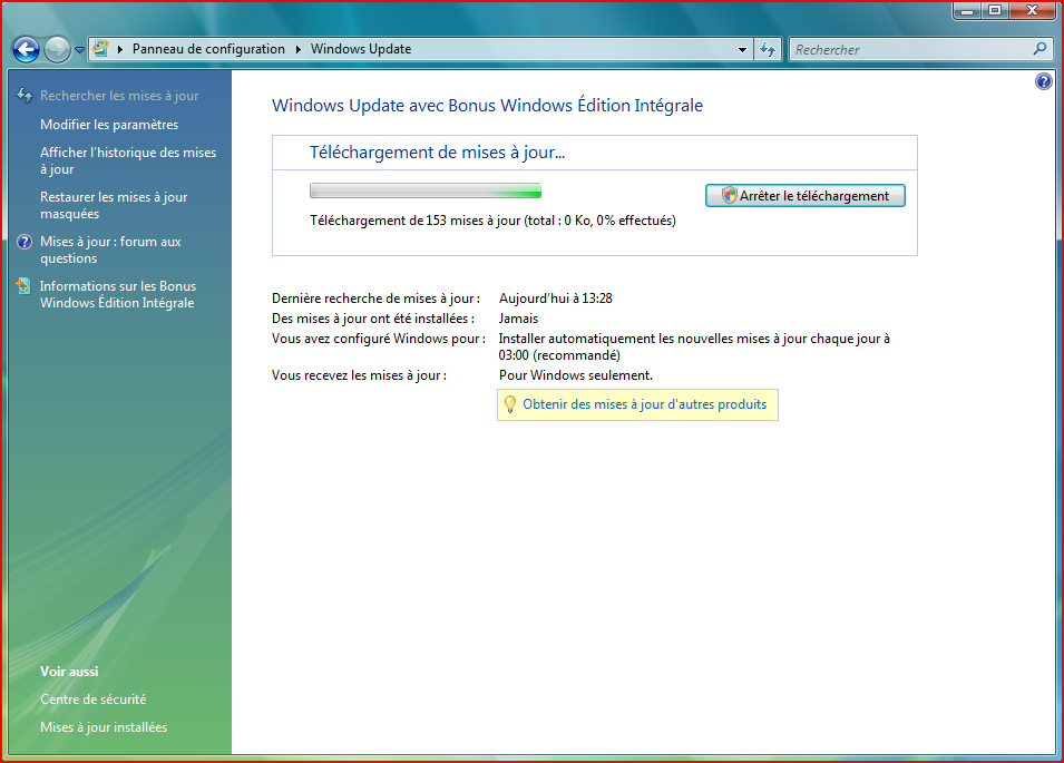 La solution ? Télécharger le Service Pack 2 de Vista, visiblement pas proposé dans les mises à jour automatiques. Attention, si Microsoft vous conseille d’installer le Service Pack 2, vérifiez bien que vous avez installé le Service Pack 1 avant, ils ne sont pas cumulatifs. Le Service Pack peut prendre un certain temps à s’installer, c’est normal.