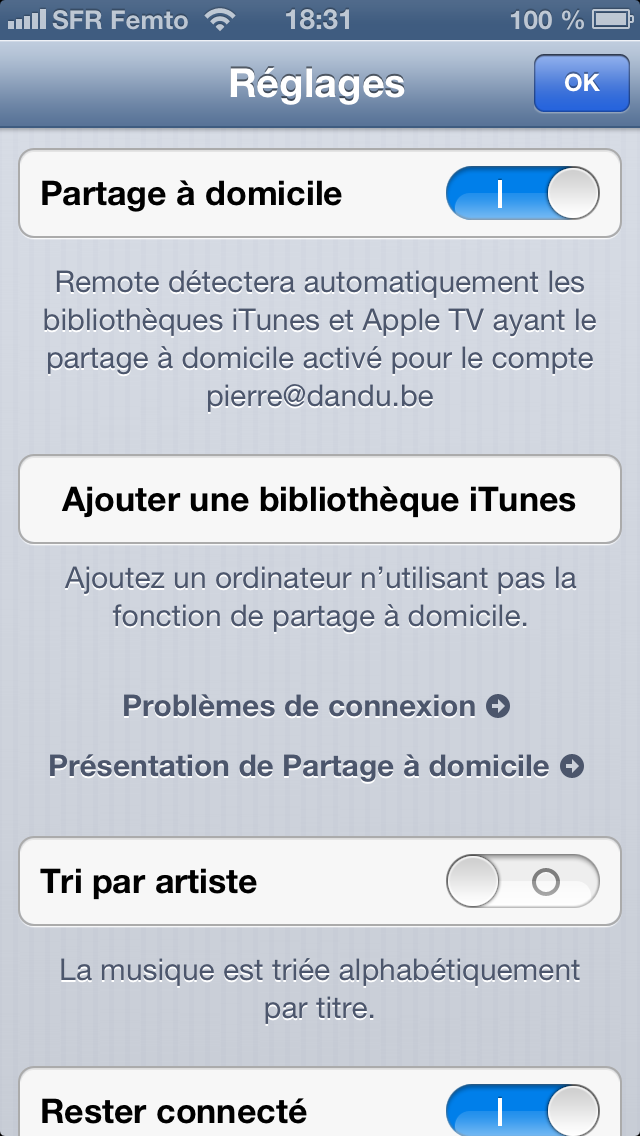 Maintenant, il va falloir gérer correctement la connexion avec Remote, le logiciel d’Apple.