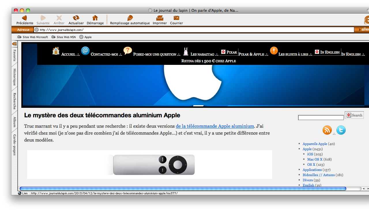 En lisant Slate, je tique sur une phrase : « Quand mon colocataire geek s’est résolu à faire le « ménage » sur mon MacBook Pro, (…) et que mon Internet Explorer, que je n’utilisais plus depuis des lustres, était tellement ancien qu’avouer sa version m’exposerait aux moqueries des lecteurs de cette rubrique high-tech. ». Internet Explorer ? Sur un MacBook Pro ? Oui, possible (même si assez improbable).