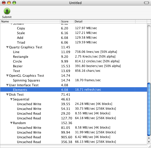 Dans mon cas, avec un SSD de 256 Go en SATA, la machine est nettement plus réactive. Deux bémols : les performances ne sont pas extraordinaires et — paradoxalement — les benchmarks indiquent une perte de performances. Visiblement, comme la carte graphique de mon Power Mac est en PCI, la bande passante est un peu faible. Dans un Power Mac G4 avec de l’AGP, ça devrait aller plus vite.