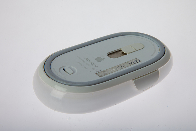 Spotted on Flickr, yet another prototype of the Apple Wireless Mouse, this time not transparent. It’s not transparent this time.
