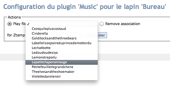 Une fois que c’est fait, il faut enregistrer le livre RFID en le passant devant le lapin, l’identifier sur le serveur (c’est plus simple) et l’associer à un fichier dans le plug-in Music.
