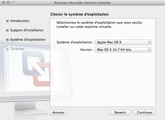Maintenant, vous faites une machine virtuelle en utilisant Mavericks.dmg comme disque d’installation et en prenant Mac OS X 10.7 64 bits ou Mac OS X 10.8 comme système.