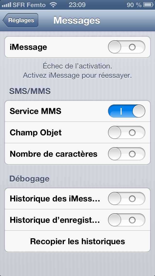 • iMessage : quelques options dans Messages, sous la partie Débogage.