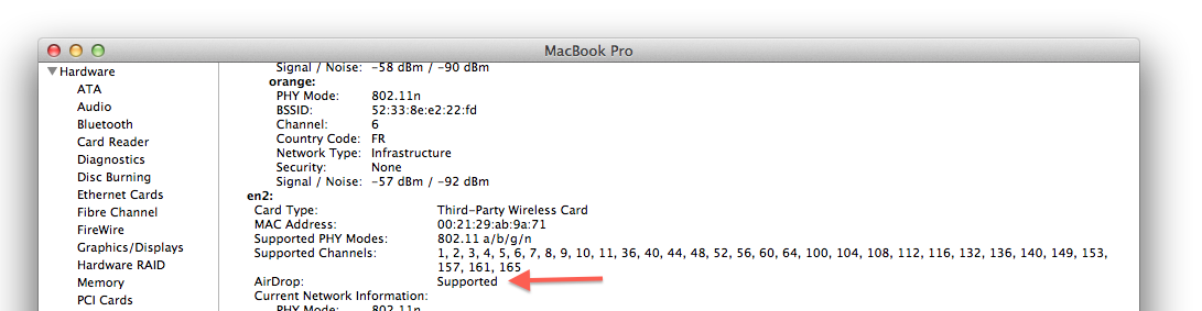 Attention aussi à un petit bug quand on a deux cartes : si la carte principale est compatible AirDrop, le système indique que la seconde l’est aussi, même si la carte ne l’est pas réellement.