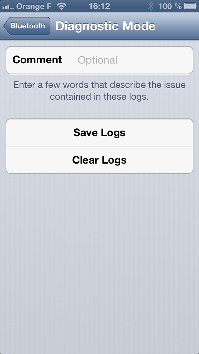 Une fois que c’est fait, dans Réglages -> Bluetooth -> Mode diagnostic, il faur choisir Save Logs.