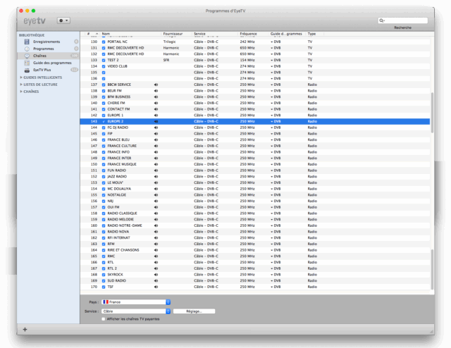 Sur ce point, c’est quand même un peu particulier : j’ai cherché un moment pour les paramètres en question. Et pour la fréquence, je n’ai pas trouvé de documentation sur ce point, mais j’avais la valeur avec EyeTV. Donc un utilisateur lambda risque tout de même de bloquer ici.