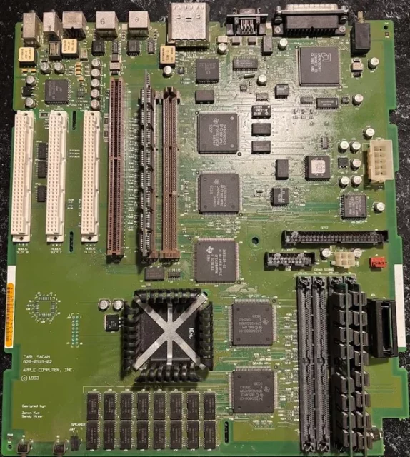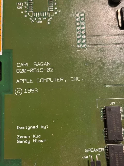 Vu sur Reddit, une carte mère de Power Macintosh 7100 un peu particulière : elle est notée Carl Sagan. C’est un prototype et il y a une bonne raison à l’absence de ce nom sur la version finale.