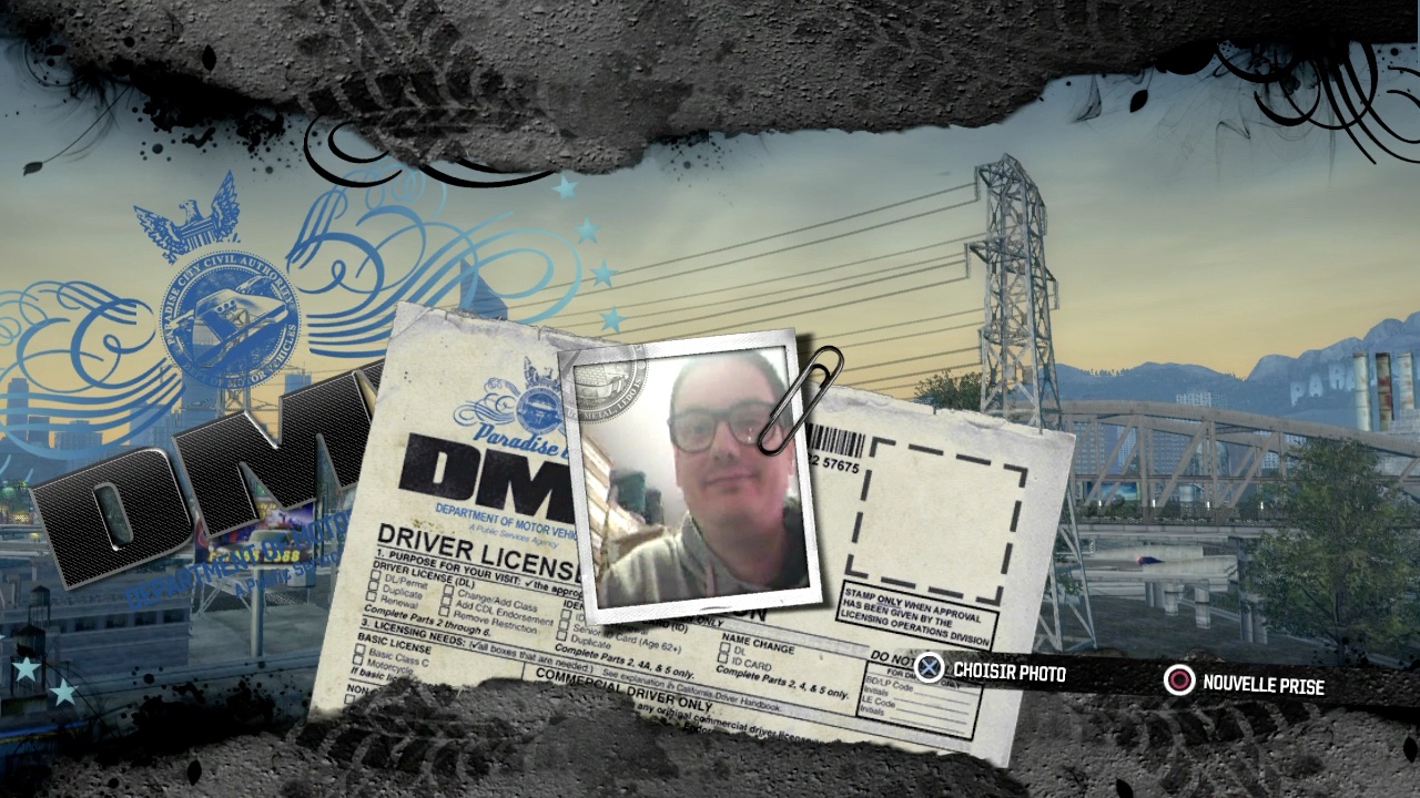 Burnout Paradise est un jeu de course sorti 2008. Dès le début du jeu, au moment de la création du permis de conduire, il accepte la caméra. Rien n’est indiqué de façon réellement explicite, mais on prend une photo pour le permis directement si la caméra est connectée.