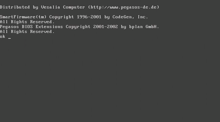Les ordinateurs CHRP sont assez rares. Il y a quelques machines IBM (certains RS/6000), quelques Motorola – le Starmax 6000 jamais sorti, certains PowerStack, le Viper et le Cobra – et quelques machines plus modernes. Les Viper et Cobra sont explicitement supportées par Mac OS 7.6 et ce sont des machines pensées avec Apple pour cet usage précis. Dans les machines plus modernes, il y a les Efika et les cartes Pegasos. Et j’ai justement une carte Pegasos I depuis des années, sur laquelle j’avais installé Mac OS X via Mac-On-Linux. Mac84, dans sa vidéo, montre qu’une personne a tenté de démarrer sur une machine IBM sans succès.