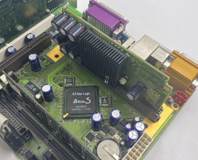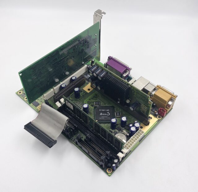 J’ai donc sorti la carte mère, un lecteur optique, de la RAM – et la carte est très énervant sur ce point -, une alimentation, etc. Il y a plus de dix ans, j’avais expliqué que la carte graphique venait d’un Mac, mais je me suis rendu compte que ce n’est pas le cas : la carte Pegasos nécessite en fait une carte avec un firmware PC (un BIOS). Mon bureau est à peu près rangé, mais sortir les différents composants m’a pris quand même un peu de temps. Et tout ça… pour rien. La carte Pegasos est sortie nettement après Mac OS 8 et les essais d’Apple et même si la plateforme est techniquement CHRP (c’est utilisé pour démarrer GNU/Linux), elle ne permet pas de démarrer Mac OS.