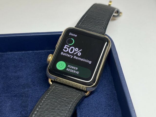 Vu sur eBay, une Apple Watch Edition, en or. Ce n’est pas si rare, et Apple a visiblement vendu quelques exemplaires de sa montre à plus de 10 000 €, il y a une dizaine d’années. Celle-ci est proposée pour 7 200 $ (un bon 7 500 € avec les taxes) mais elle a une particularités : ses bracelets.