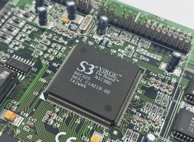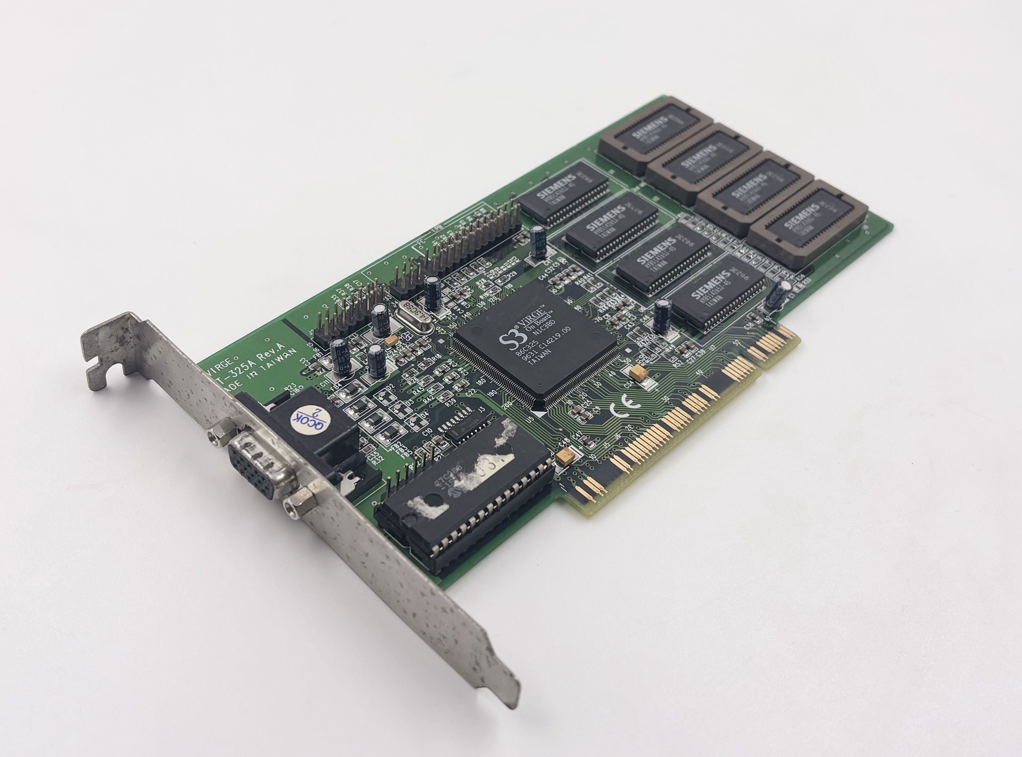 Avant de parler du résultat, il faut expliquer quelques biais sur la Virge de S3 (Video and Rendering Graphics Engine). C’est un composant développé fin 1995 par S3, l’équivalent d’une S3 Trio64 avec une accélération 3D. Dans la pratique, la carte est sortie mi-1996 (quand Microsoft a proposé son API Direct3D) et c’était plutôt un composant d’entrée de gamme. La carte est parfois mise en avant face aux premières 3dfx, mais il y a un bon six mois de décalage (la première Voodoo Graphics date de fin octobre 1996) et le prix n’était pas le même. On était vers 200 $ pour les premières cartes S3 Virge (et rapidement vers 100 $) et à 300 $ pour les premières 3dfx, qui nécessitaient une carte 2D. La différence paraît faible, mais en 1996 c’est énorme : à l’époque, une carte graphique est réellement obsolète en six mois dans certains cas. La S3 Virge (au moins la version de base, la 325) n’est donc vraiment pas une concurrente des Voodoo Graphics.
