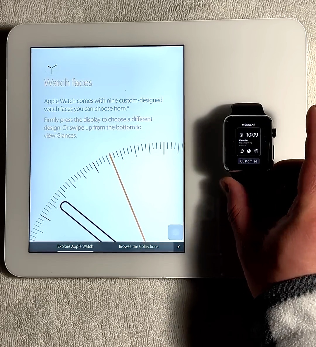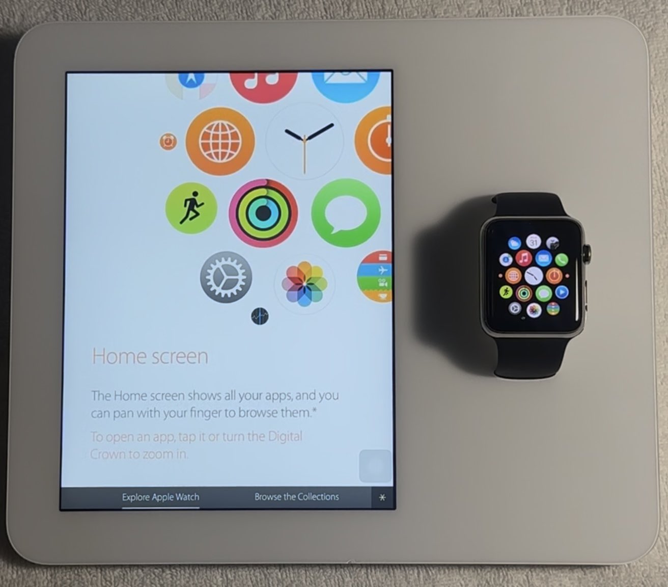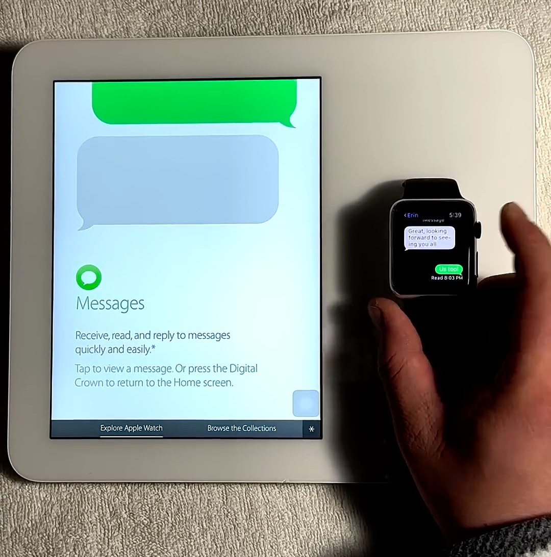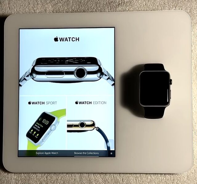 Apple Demo a fait une vidéo, aussi. On voit que la montre est synchronisée avec l’iPad pour le contenu.