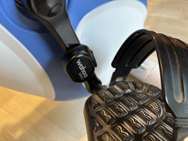 L’idée, c’était simplement d’avoir la distance parcourue avec mon vélo d’appartement dans l’app Santé. Si le capteur de vitesse est physiquement très proche du capteur de cadence (il y a des modèles noname qui font les deux), l’installation n’est pas la même. Le premier se colle littéralement sur la pédale, le second se fixe avec une sorte de ceinture en caoutchouc.