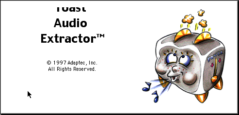 Mais il y a quand même un autre Easter Egg. Si vous pressez option en cliquant sur -> About Adaptec Toast, vous verrez… un toast. Ça fonctionne aussi avec Toast Audio Extractor, qui a une icône différente mais un Easter Egg du même genre.