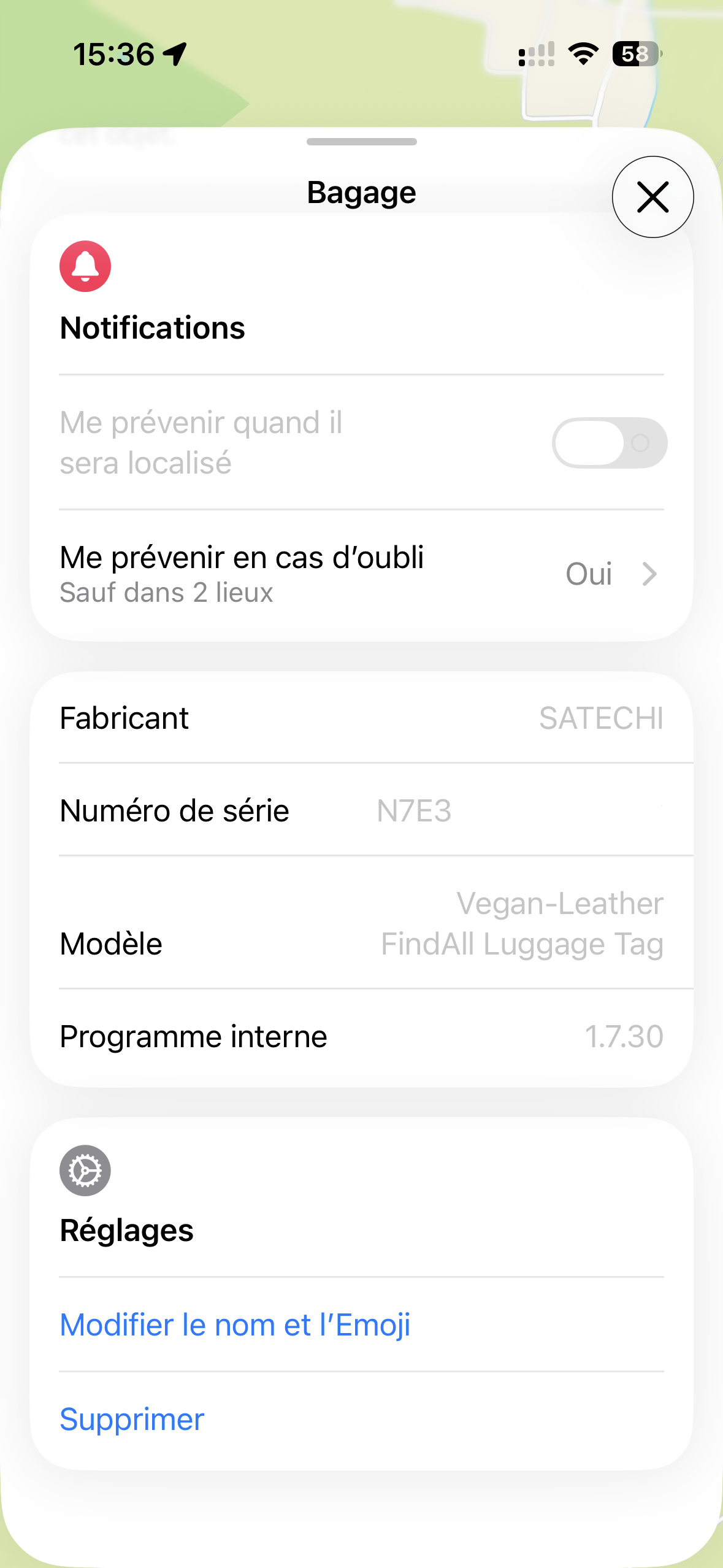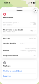 Sur l’iPhone, on a les mêmes fonctions que tous les traqueurs : une localisation en Bluetooth et à travers le réseau. Il n’y a pas d’UWB et de localisation précise comme sur les AirTags, donc. La sonnerie est dans la moyenne : une mélodie spécifique, assez forte, qui est jouée deux fois pour environ quinze secondes au total. C’est dans la moyenne, sans plus : certains traqueurs sonnent plus fort. Disons que pour retrouver un bagage dans un aéroport, ça doit suffire.
