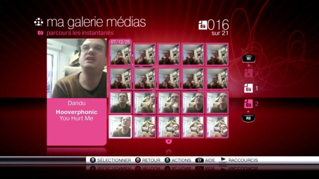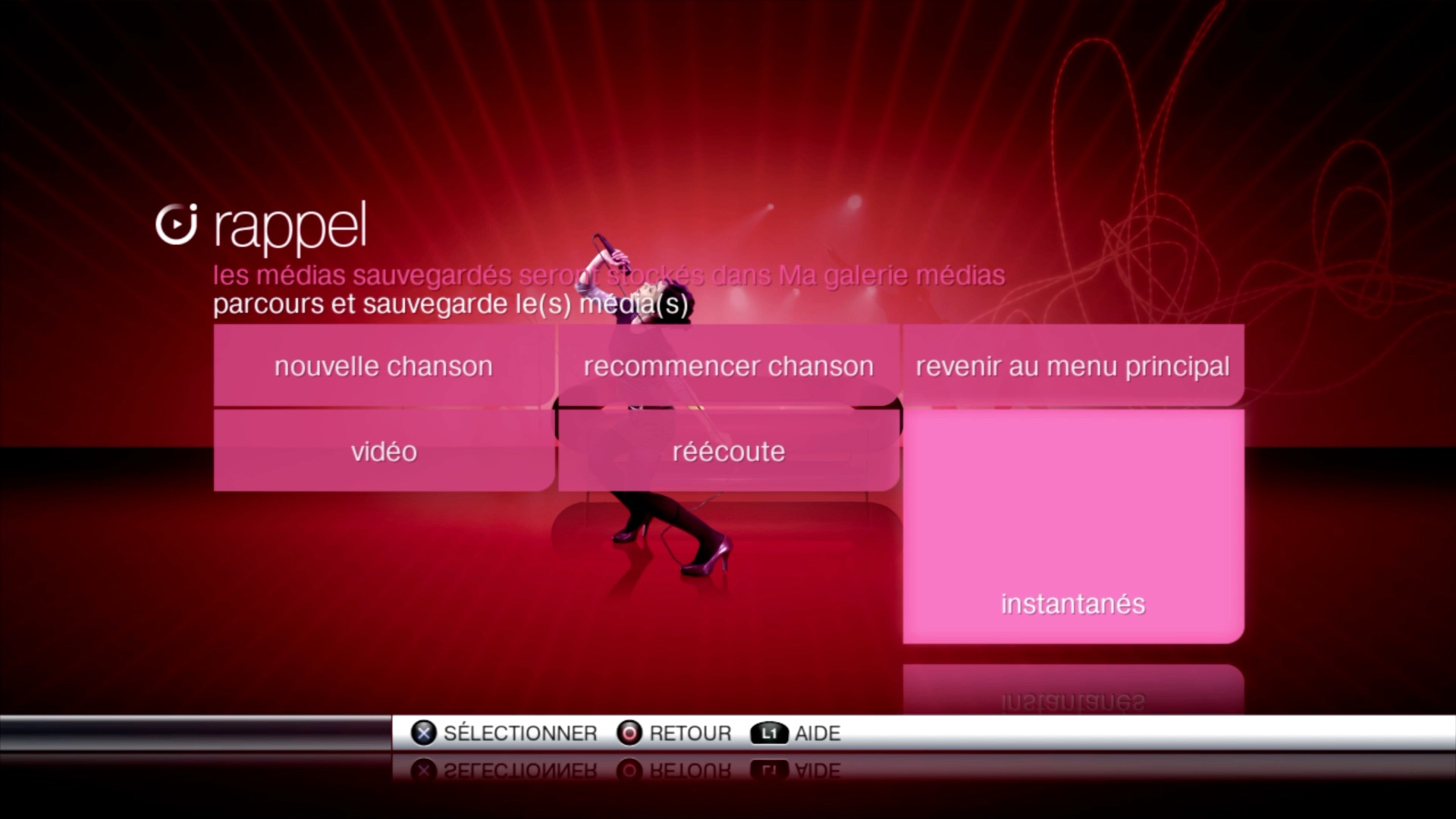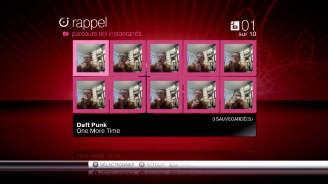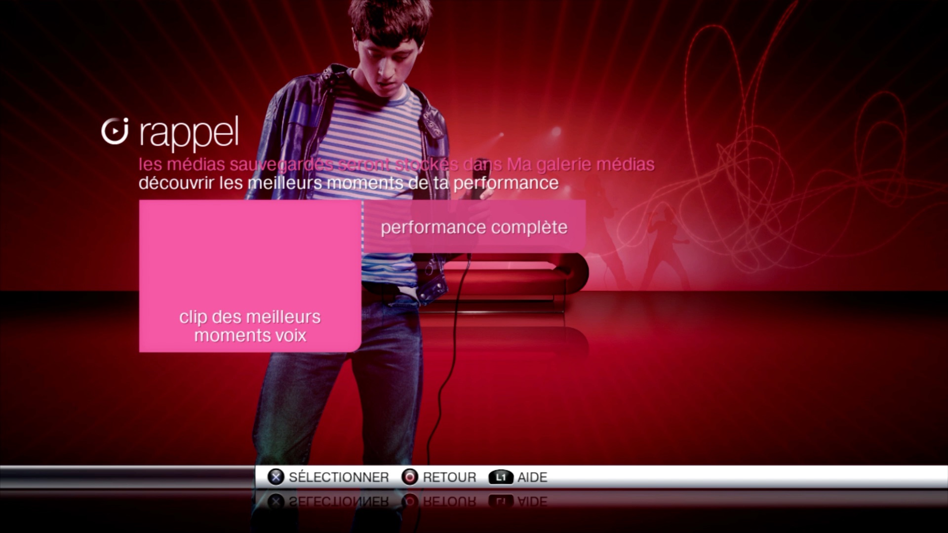 Le jeu permet de sauvegarder les meilleurs extraits (en vidéo), l’ensemble de la prestation (en vidéo) mais aussi des captures automatiques (dix par chanson). J’espérais les retrouver dans la galerie de la console pour exporter les images, mais ce n’est pas le cas. Elles sont dans SingStar et restent dans SingStar.