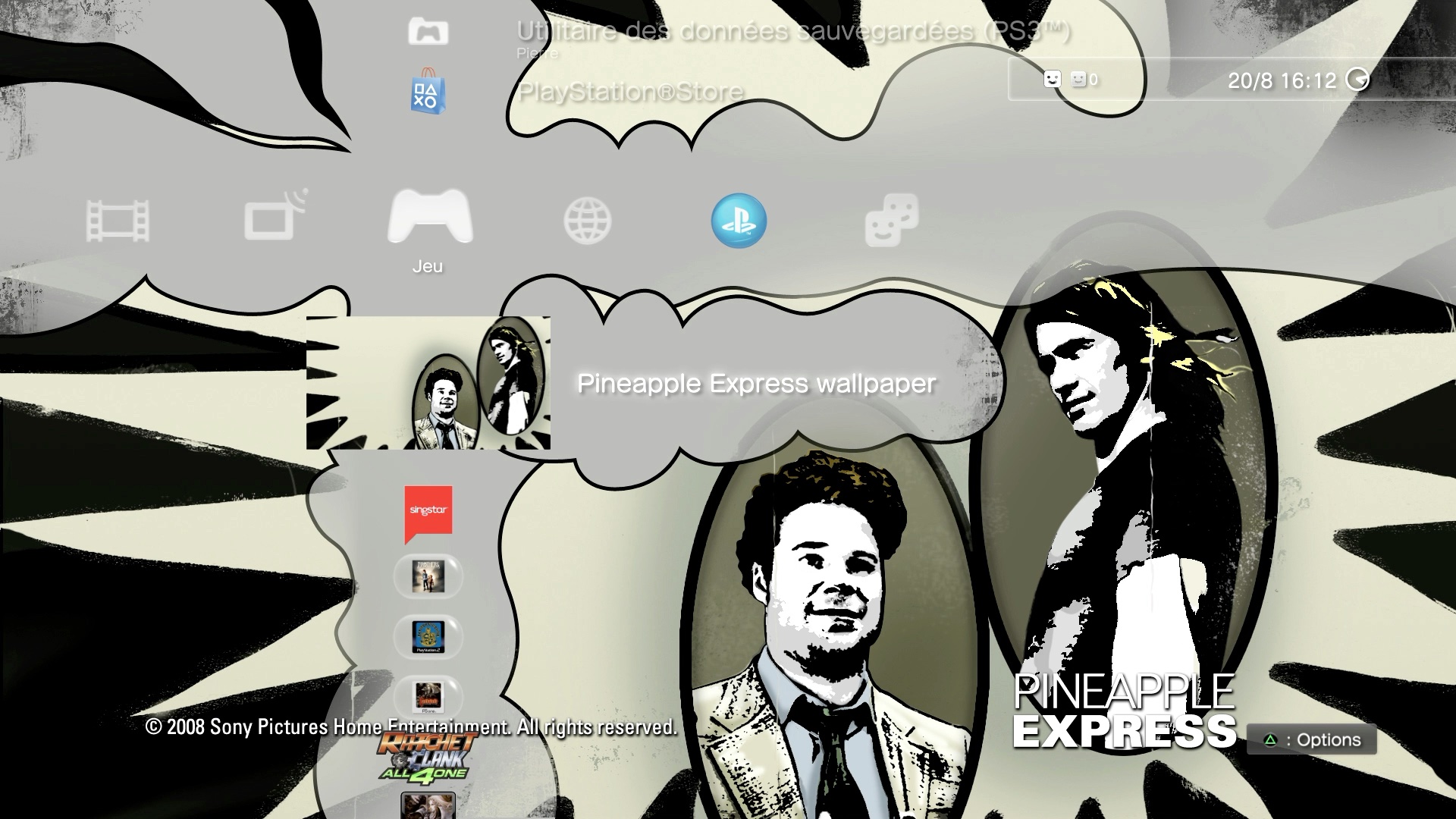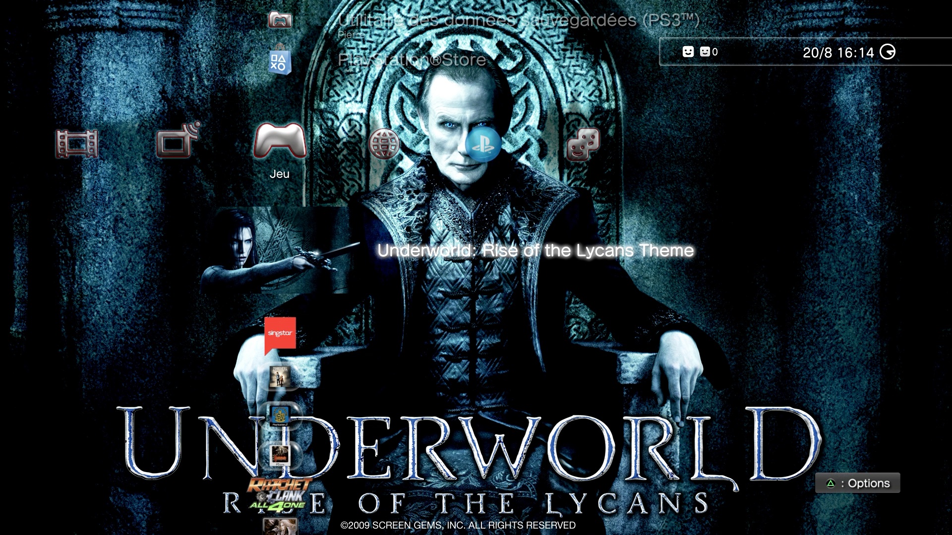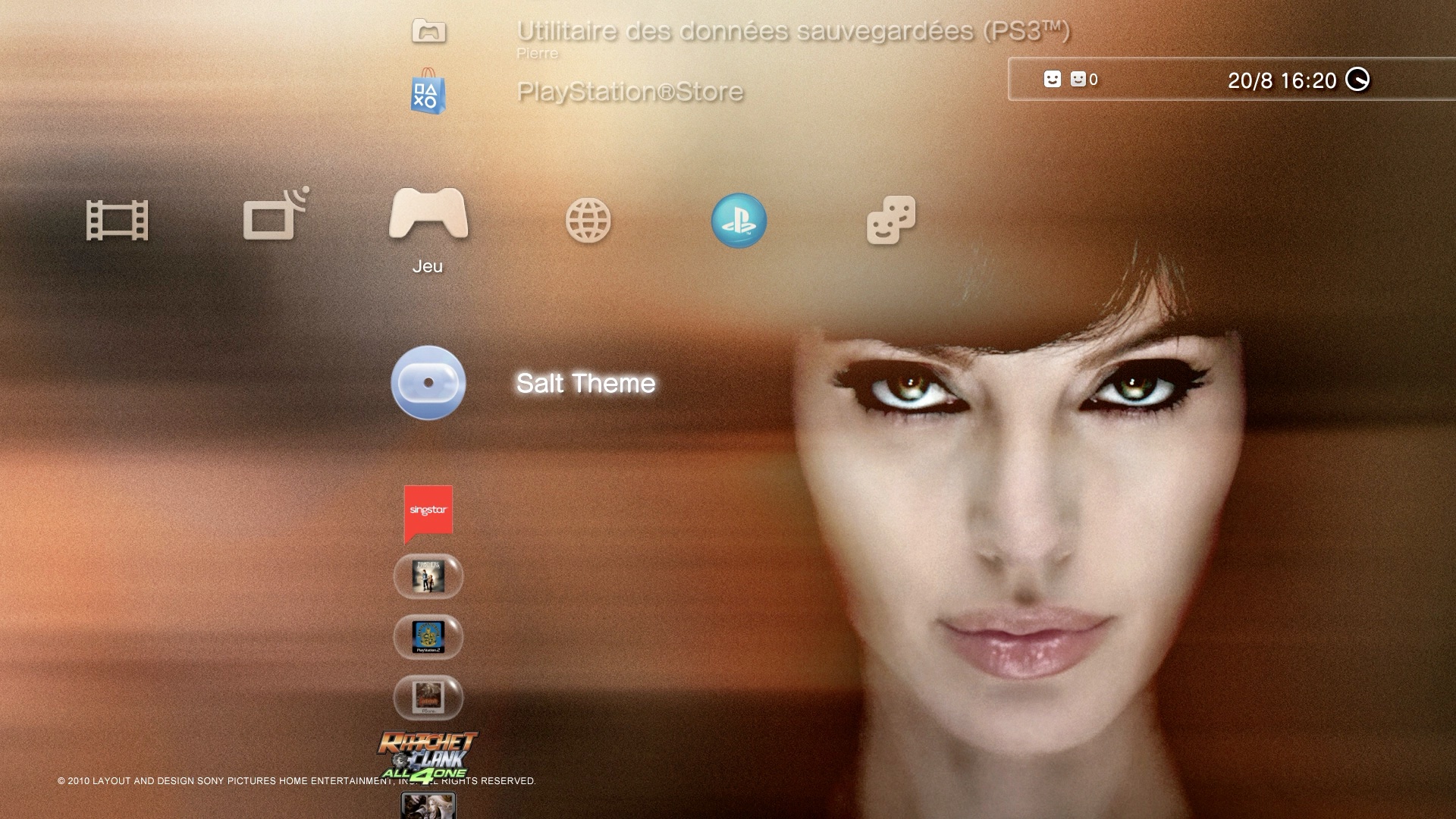 J’ai trouvé quelques Blu-ray (essentiellement américains) avec des thèmes, donc voici quelques captures. Ils sont accessibles dans la section Jeu du menu XMB de la console (et pas dans celle dédiée aux films). Dans certains cas, il n’y a pas d’icône. Les fichiers de thèmes ont l’extension .P3T (dans /PS3_CONTENT/THEMEDIR/D000) et peuvent être extraits sous Windows avec P3T Unpacker. On trouve les fonds d’écran, les icônes du menu XMB, etc. Il y a une grosse liste de Blu-ray avec des thèmes là.