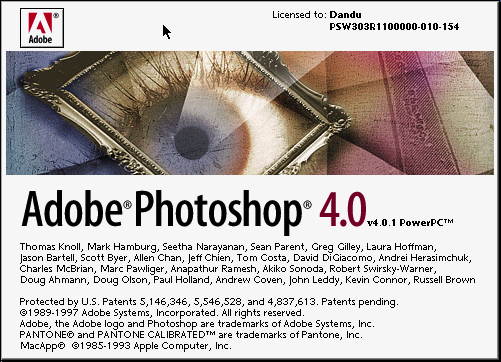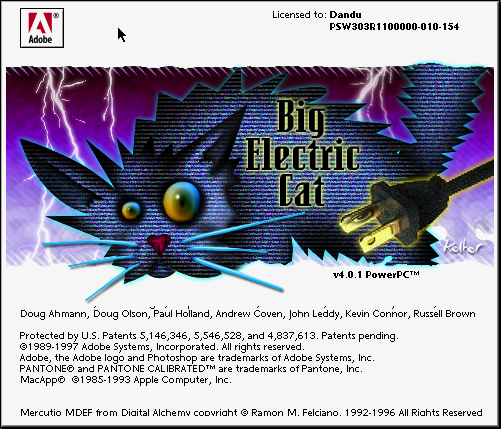 Photoshop, le nom d’un logiciel qui est devenu un verbe en français, n’est pas tout neuf. Dans la version 4.0 de 1996, il y a un Easter Egg en rapport avec le nom de de code, Big Electric Cat.