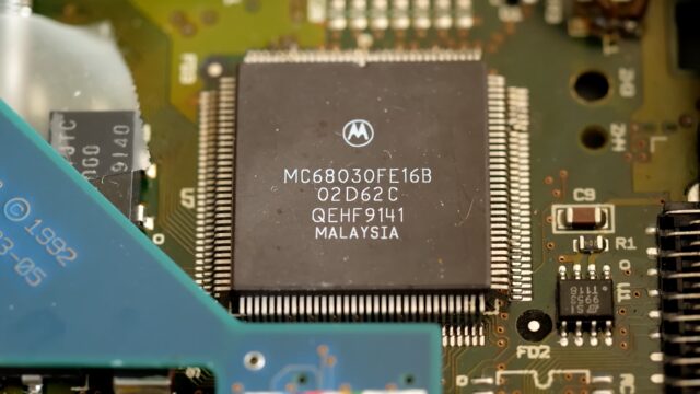 La réparation elle-même est passé par une inspection de la carte mère, et des nombreuses modifications manuelles. Il y a une carte Lana Lang avec une ROM programmable, et le nom de code est lié à la machine. La carte mère est Metropolis, un des connecteurs est Daily Planet, etc. Le processeur lui-même est particulier : c’est un 68030 à seulement 16 MHz, alors que les PowerBook Duo ont au moins la version à 25 MHz.
