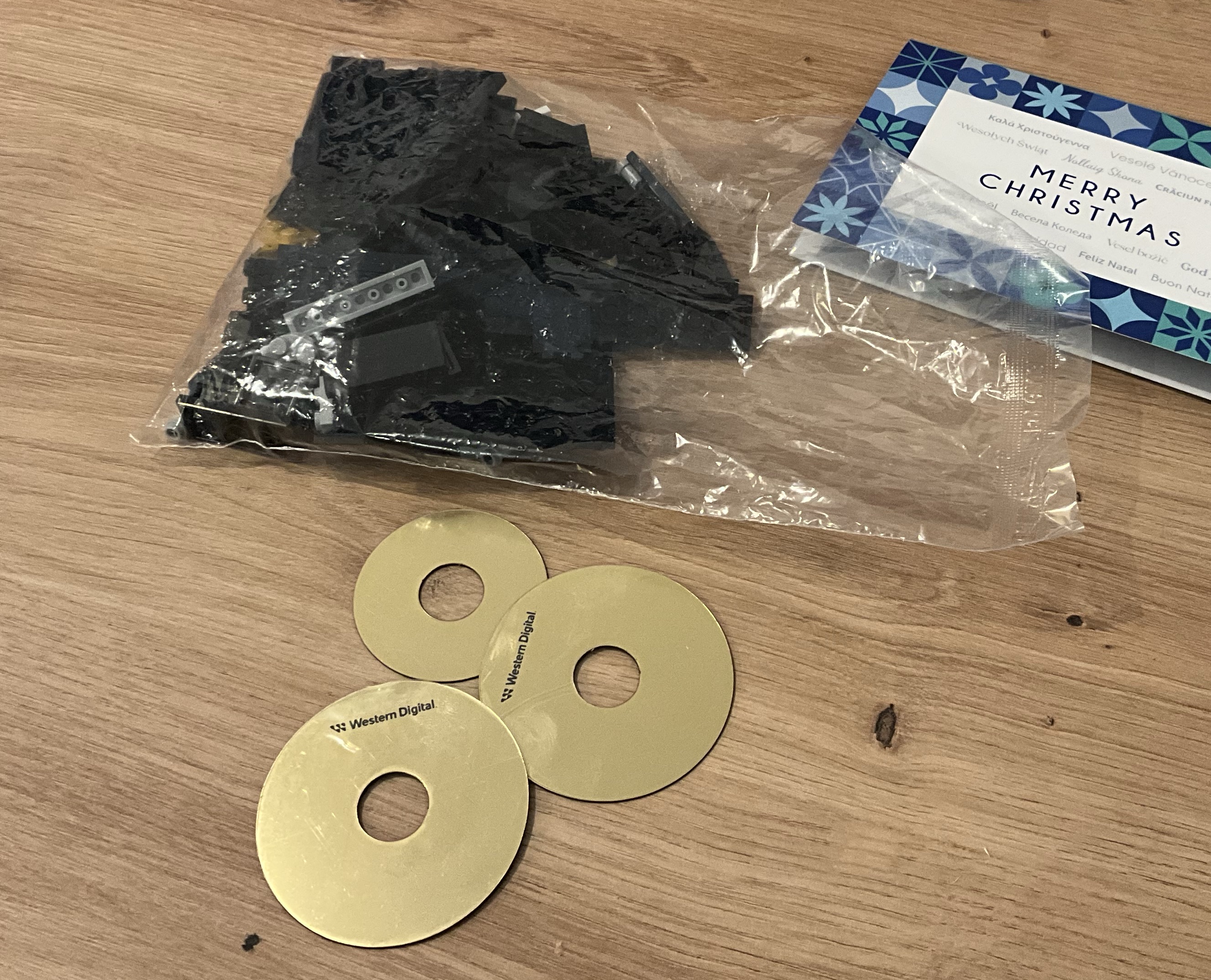 Petit avantage de mon métier, on reçoit de temps en temps de petits cadeaux pour Noël des marques. Pas de la RAM, des SSD ou des Mac, mais des goodies (gourdes, tasses, etc.). Cette année, Western Digital a envoyé un disque dur en LEGO à la rédaction, et j’ai pu le récupérer.