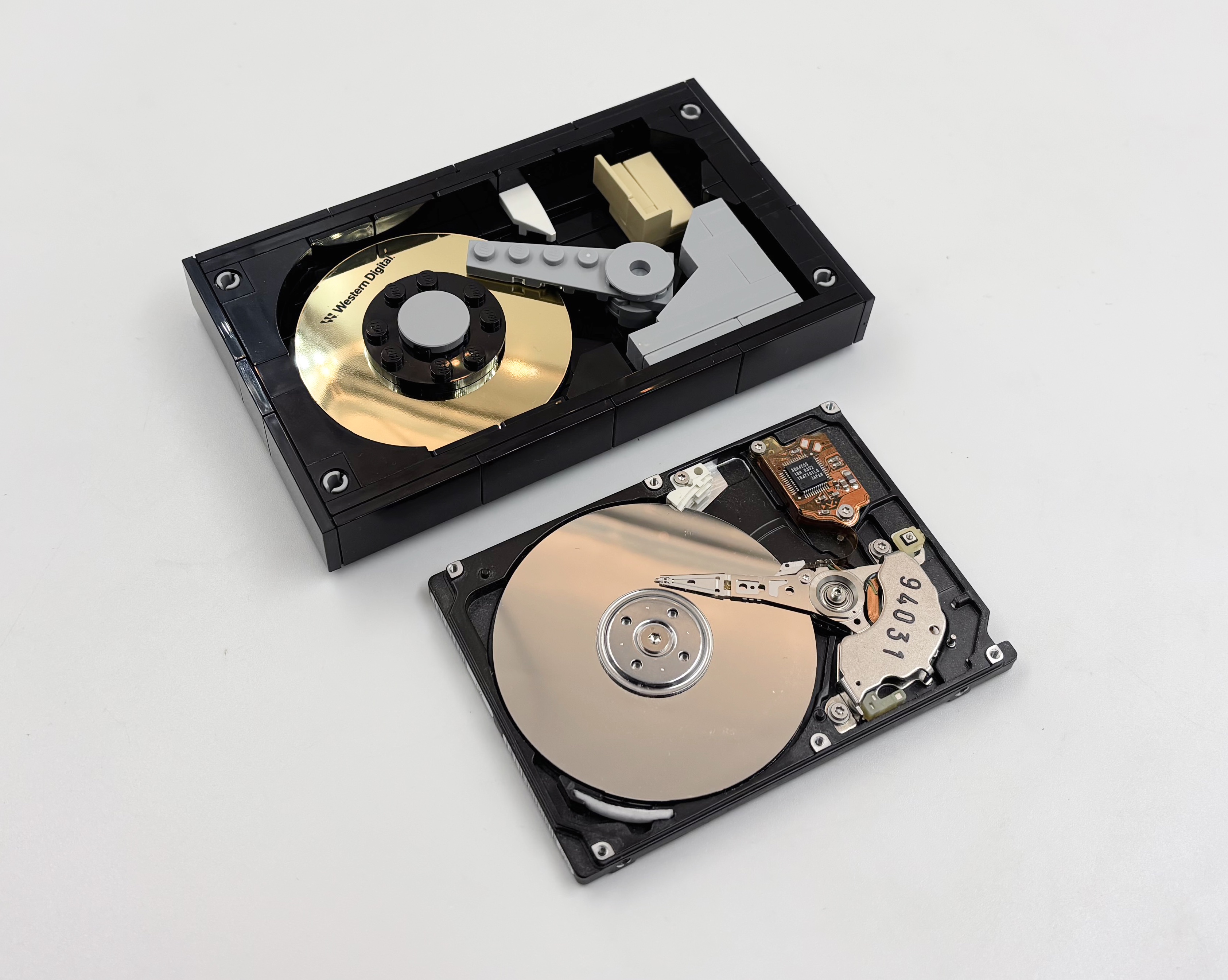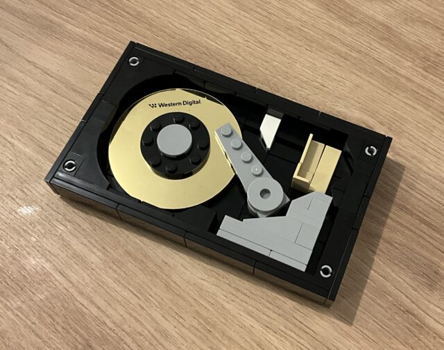 Bon, revenons au disque dur. La construction est moyenne, il faut bien le dire. J’aime bien les LEGO (j’avais parlé de ma manette Mega Drive, mais j’en montre régulièrement sur les réseaux sociaux) mais le plan est un peu limite. La liste des pièces de chaque étape ne permet pas de facilement déterminer si une pièce est une 1×1 ou 2×2 par exemple. Il y a aussi des étapes ratées, etc. Ce n’est pas horrible, mais il y a des erreurs sur le placement des pièces et j’ai dû revenir en arrière dans certains cas, alors que j’ai l’habitude d’en monter.