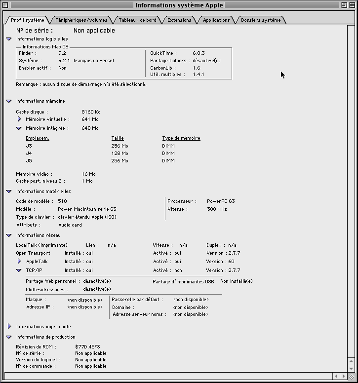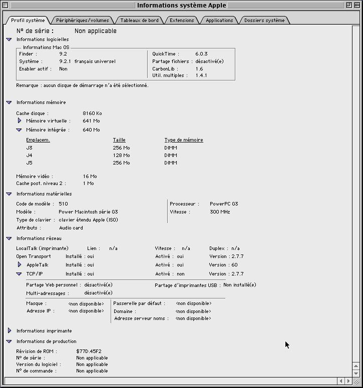 J’ai mis la ROM dans mon Power Macintosh G3 et ça a démarré directement avec la carte mère de mon modèle, équipé d’une puce ATi Rage Pro. Je n’ai pas vu de différences particulières sur le fonctionnement du Mac, mais c’est logique : la ROM en version C corrigeait déjà pas mal de choses.
