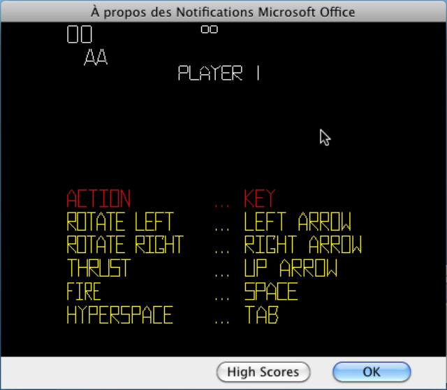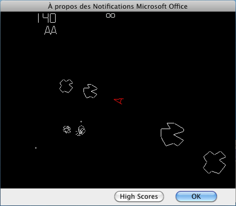 Dans Microsoft Office 2004, sur Mac, Microsoft avait caché le jeu Asteroids.