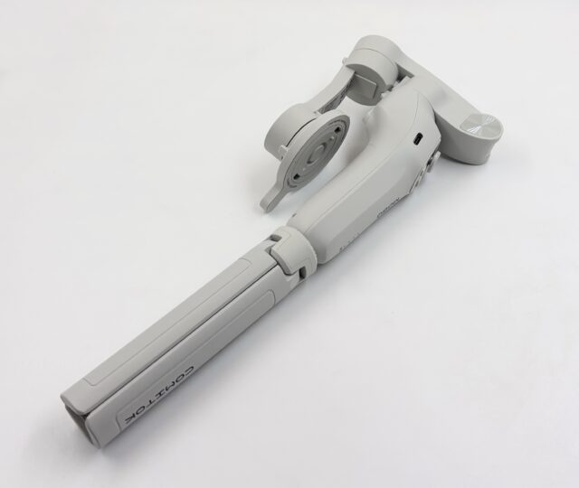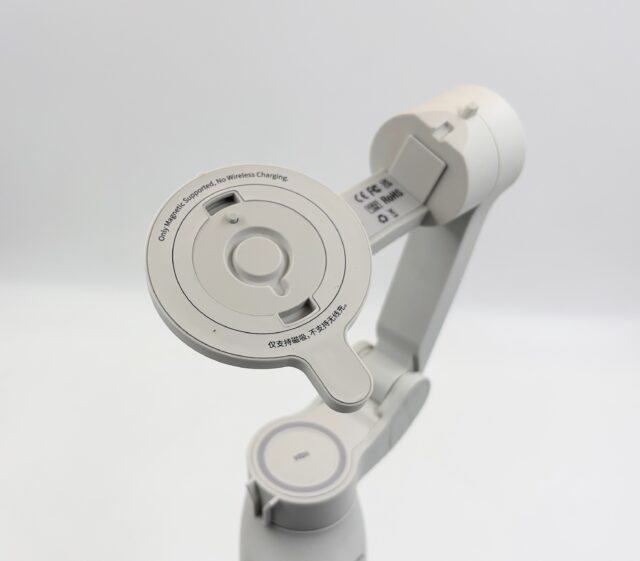Un peu de physique, maintenant. Le stabilisateur est plus lourd que le Flow 2 Pro (343 grammes mais 434 grammes avec le trépied), contre 389 grammes pour l’autres (avec le support MagSafe). Enfin, disons que ça dépend de votre usage : si vous n’avez pas besoin du trépied, il est plus léger. S’il est bien fini, avec des plastiques solides, la qualité perçue me semble un peu moins bonne. Le bras est plus léger, et ça semble un peu moins solide. Enfin, autre point physique, il n’y a pas de perche à selfie intégrée, pas de miroir pour cadrer, etc. Le Mogo va à l’essentiel et ce n’est pas plus mal.
