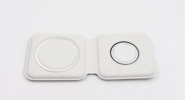 Lancé en 2020, le MagSafe Duo était une sorte de relecture de l’AirPower (jamais sorti), qui permet de charger un iPhone en MagSafe et une Apple Watch, dans un format compact. J’en ai acheté un récemment (d’occasion, Apple ne le vend plus), donc petit test (presque) rétro.