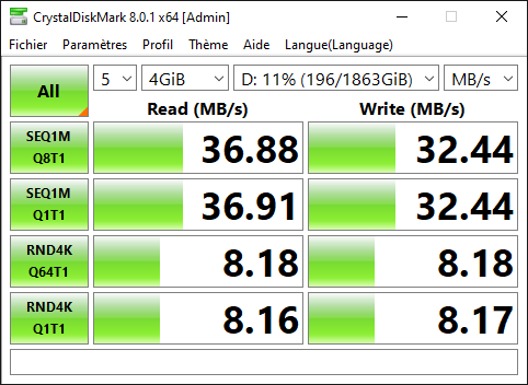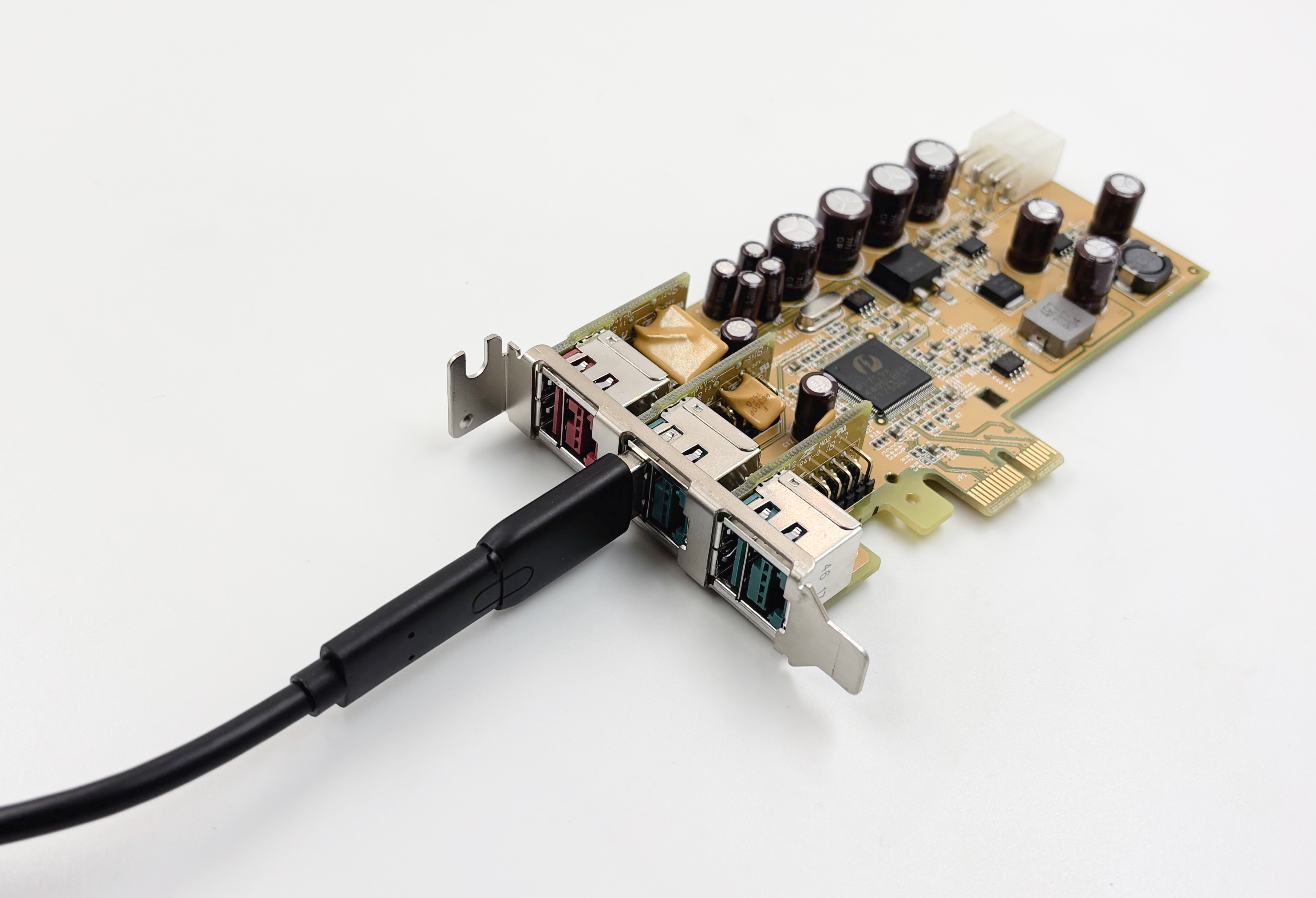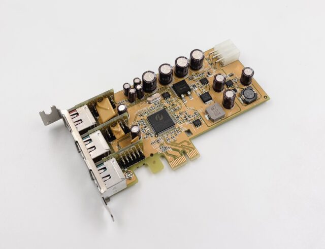 J’ai acheté la carte pour un point précis : son contrôleur Pericom PI7C9X440SL. C’est un contrôleur USB 2.0 en PCI-Express, et il a de bonnes performances quand on branche un périphérique standard. J’en avais besoin pour un autre test, et on en reparlera.