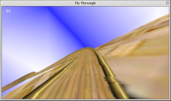 En software, on est vers 100 images/s sans accélération (j’ai désactivé les extensions de la carte graphique). Et entre 30 et 35 images/s avec les textures, mais sans filtrage. Donc la carte amène un bon gain quand on commence à charger la scène.
