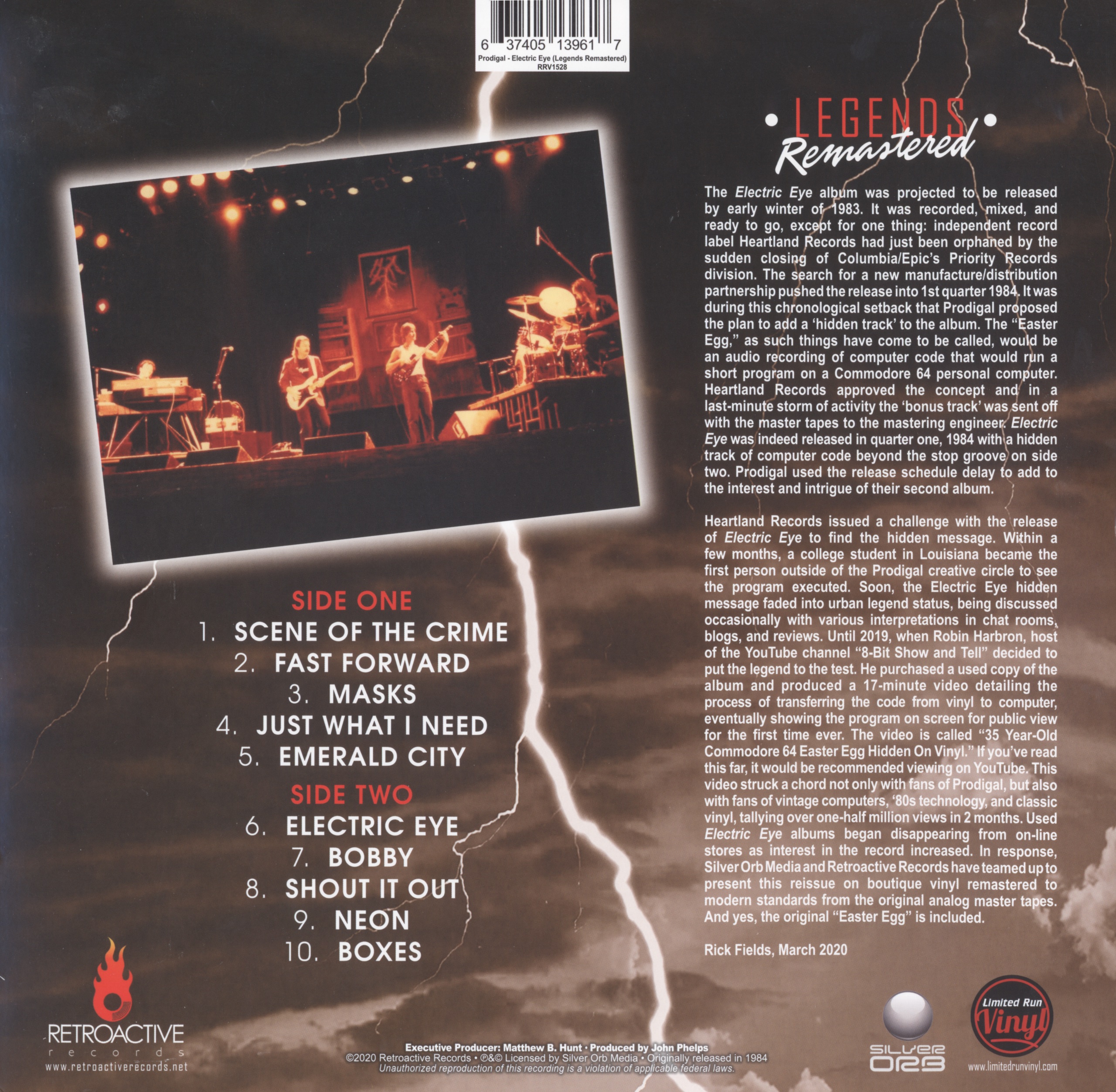 Electric Eye de Prodigal, c’est le vinyle avec des données le plus connu, parce que la vidéo de 2019 de 8-Bit Show And Tell a été très vue et partagée dans les médias. Et du coup, quand le disque a été réédité en 2020, il a pu ajouter un Easter Egg, tout en gardant le premier.