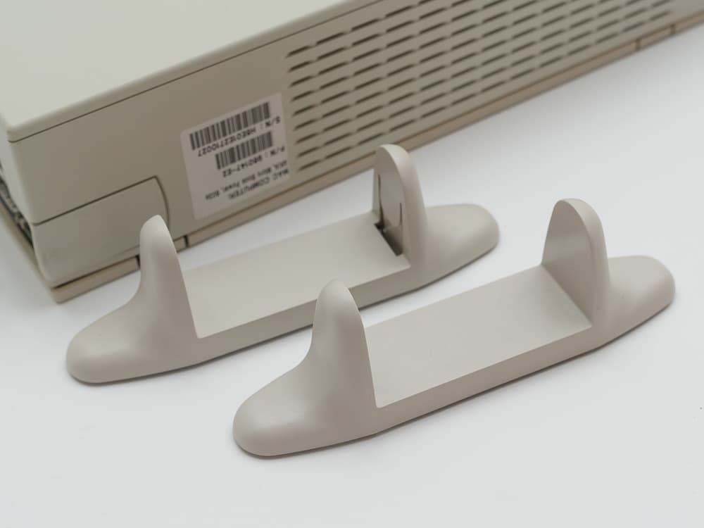 Intéressant! C’est un UMAX C500 (ou Apus 2000 en europe/asie) rebrandé. La seule différence c’est une modification de la façade plus « plate »), les pieds et la backplane. Le C500 étant pensé pour un usage en mode desktop le dessous est nu.