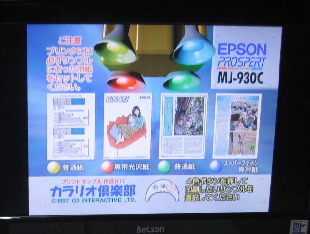 À propos de la « mystérieuse Pippin noir » qu’Atto-san a mentionné dans le livre d’or, moi aussi je l’ai déjà vue. Il s’agit d’un présentoir (POP) de démonstration pour les imprimantes EPSON Colorio, bien connues pour la démo SPEED. On le trouve souvent dans les rayons imprimantes des magasins d’informatique : l’unité principale est cachée dans une boîte, mais on la reconnaît grâce à la manette noire.